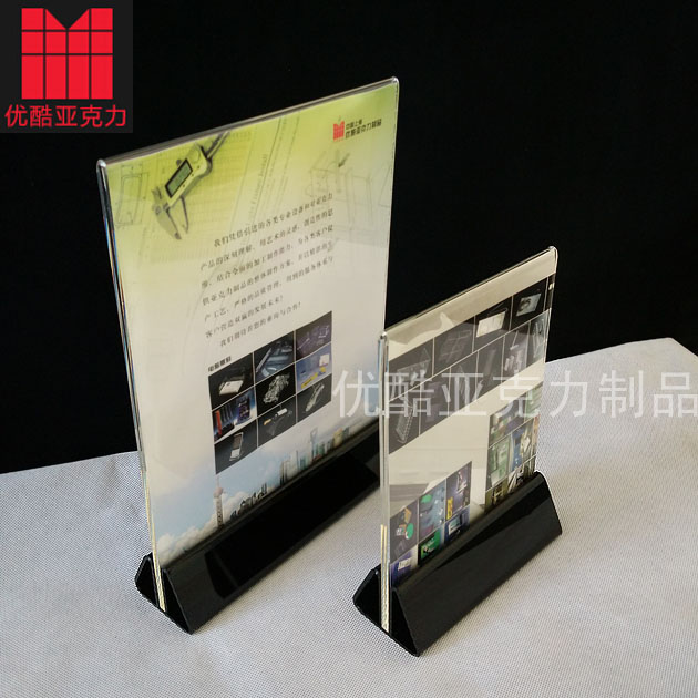 嘉定亞克力加工廠優(yōu)酷工廠制作的臺(tái)牌臺(tái)簽在市場(chǎng)上受到各大商家們的青睞!款式簡(jiǎn)單大氣,價(jià)格便宜!是商家們最好的選擇!優(yōu)酷亞克力制品公司還有其它多款式的臺(tái)牌可定制,如:V型、I型、三角型、酒水牌、餐牌、廣告牌、指示牌等,都是我們優(yōu)酷亞克力加工廠的強(qiáng)項(xiàng)!