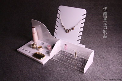 化妝品展示架及手機展示架多運用于各個商場專柜、這些產(chǎn)品專賣店或公司展示之中,亞克力展示架起到尤為重要的作用,款式多樣,色彩豐富,配合絲印上去的logo圖案能滿足產(chǎn)品的促銷展示效果。一款好的產(chǎn)品展示架無論在外形設計還是商品擺放上都給客戶一種很大的空間感,這樣才能符合客戶的需求,更加顯出產(chǎn)品的檔次,奢華高貴,讓客戶的信任感瞬間增加,同時達到隱性廣告的作用。