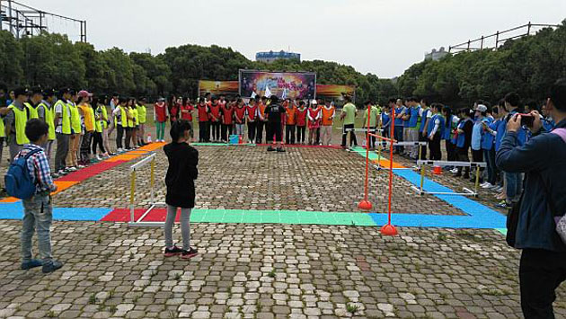 規則是:鞋子要脫掉,男生還要脫掉襪子。每組四個人,一共四輪,第一人跨三道欄,到第二個人時馬上擊掌,第二個人用鞋子投欄,成功后和第三個人擊掌,第三人跳圈---第四人挎一個欄然后鉆一個欄,這個比賽比的是速度。三個小組的隊員各自分工,找出最適合做某個環節的人員,他們時而像老虎,時而像猴子,憋著一股勇爭第一的牛勁,我們飛鷹隊最后得了倒數第一。分析原因是投鞋子時費了點時間,還有我和另一名隊員在鉆橫杠時鉆了兩遍,這真是難倒了我,腰不行,害我跪了兩次地,腿也青了,最后勉強算了過。但是無論是哪個環節影響了速度,【有機玻璃制品】我認為都不是最重要的,最重要的是參與!重在參與!
