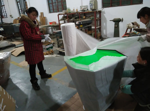 第一次制作時我沒有跟上,因為當時還沒入職,第二次制作時剛好入職,記得上次制作一組飛機模型展示柜,從制圖到裁板,從釘木柜到組裝亞克力板,大家在一起的努力場景!齊心協力完成!最后呈現在消費者面前的才是專賣店的一組組翠綠的亞克力展示柜,真心不容易啊!