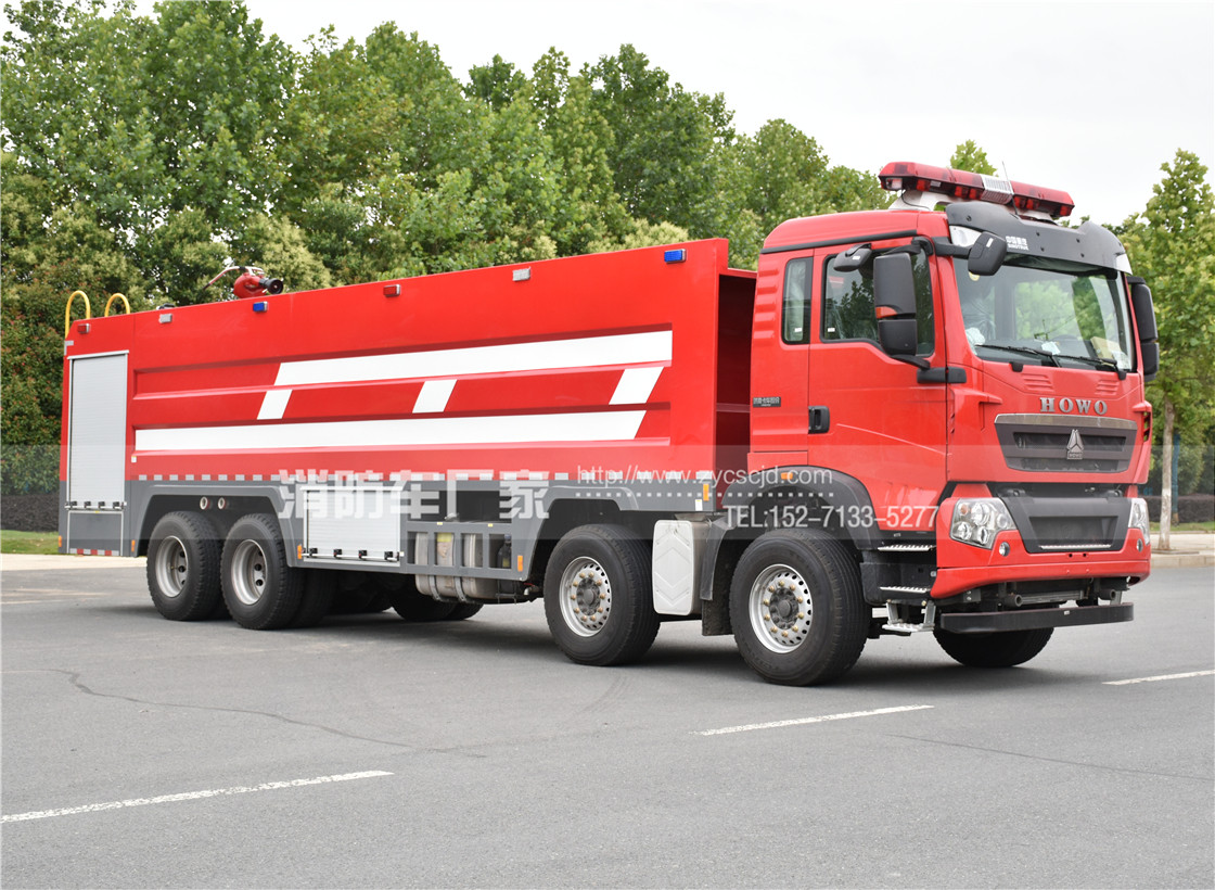 國五重汽25噸泡沫消防車,在重汽原裝二類底盤上改裝而成,載液量25立方,配置CB10/60型消防泵,PL48型消防炮,隨車配備常用消防器材,具有動力強勁,機動性好,操作方便,射程遠的特點,適用于消防隊,專職隊,社區、街道、村鎮、工業園、校園、企業,風景區,博物館等場所。